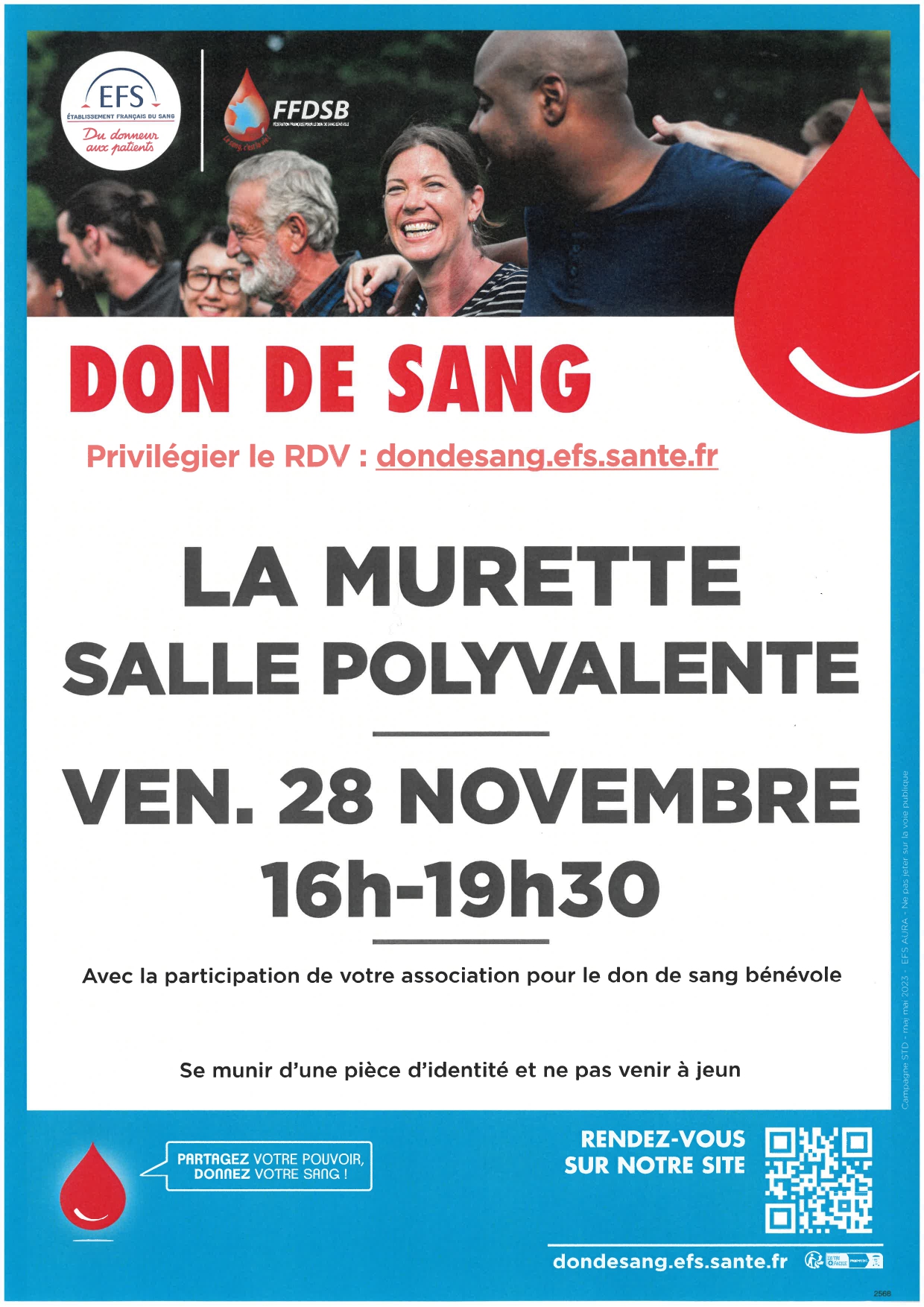 La collecte de sang aura lieu le vendredi 28 novembre à la salle polyvalente, à partir de 16h.