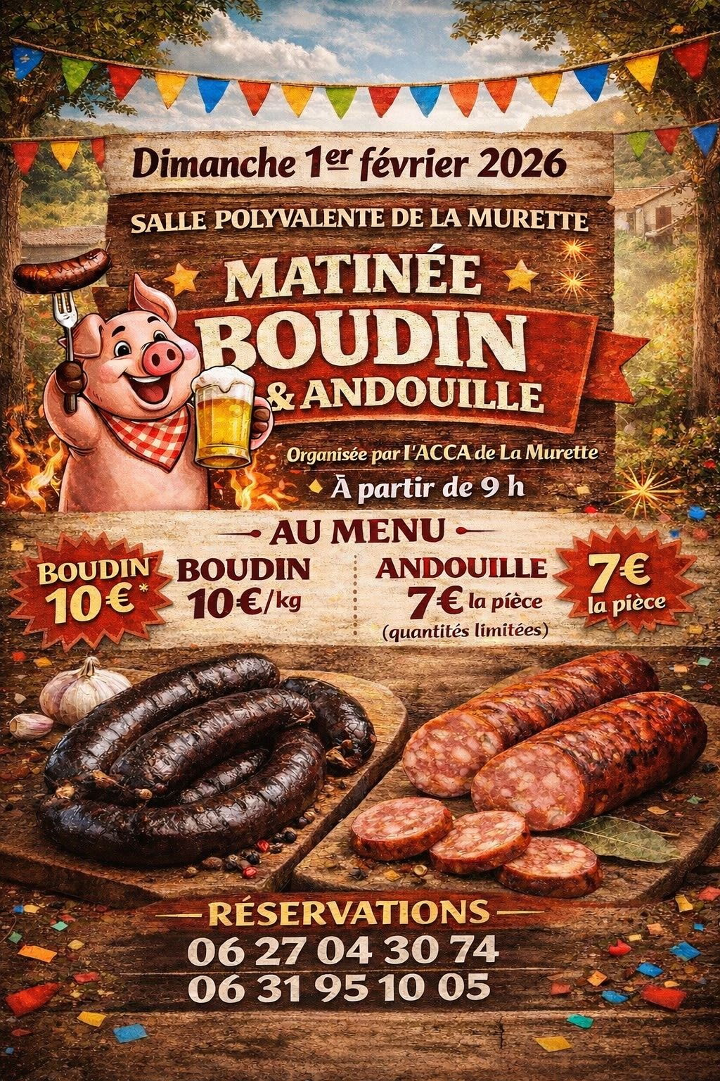 L’ACCA vous donne rendez-vous le dimanche 1er février 2026, dès 9h, à la salle polyvalente, pour sa matinée boudin & andouille !